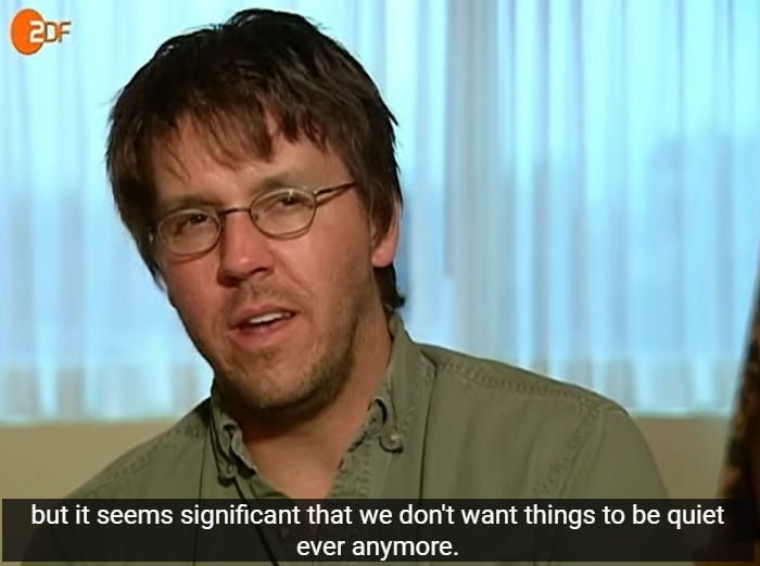We are drowning in a river of short-form video. Where the allure isn’t even the content but the abundance, the infinitude of the flow. As the cultural conversation is dominated by what is fast and loud and immediately engaging, because those are the qualities screens reward, we lose the capacity to think in paragraphs, to think hard about the same thing for half an hour, to practice any kind of sustained attention. The ideas that resist compression are forgotten, cast aside, as everything has to be in bullet points, stripped of all excess verbiage. The faster things go, the more immersed we are in the flow, addicted to the speed, unwilling to grapple with the slowness of the real world around us, the more we forget to feed the part of ourselves that likes quiet, that can live in quiet. That deprivation makes itself felt in the body as a kind of dread.