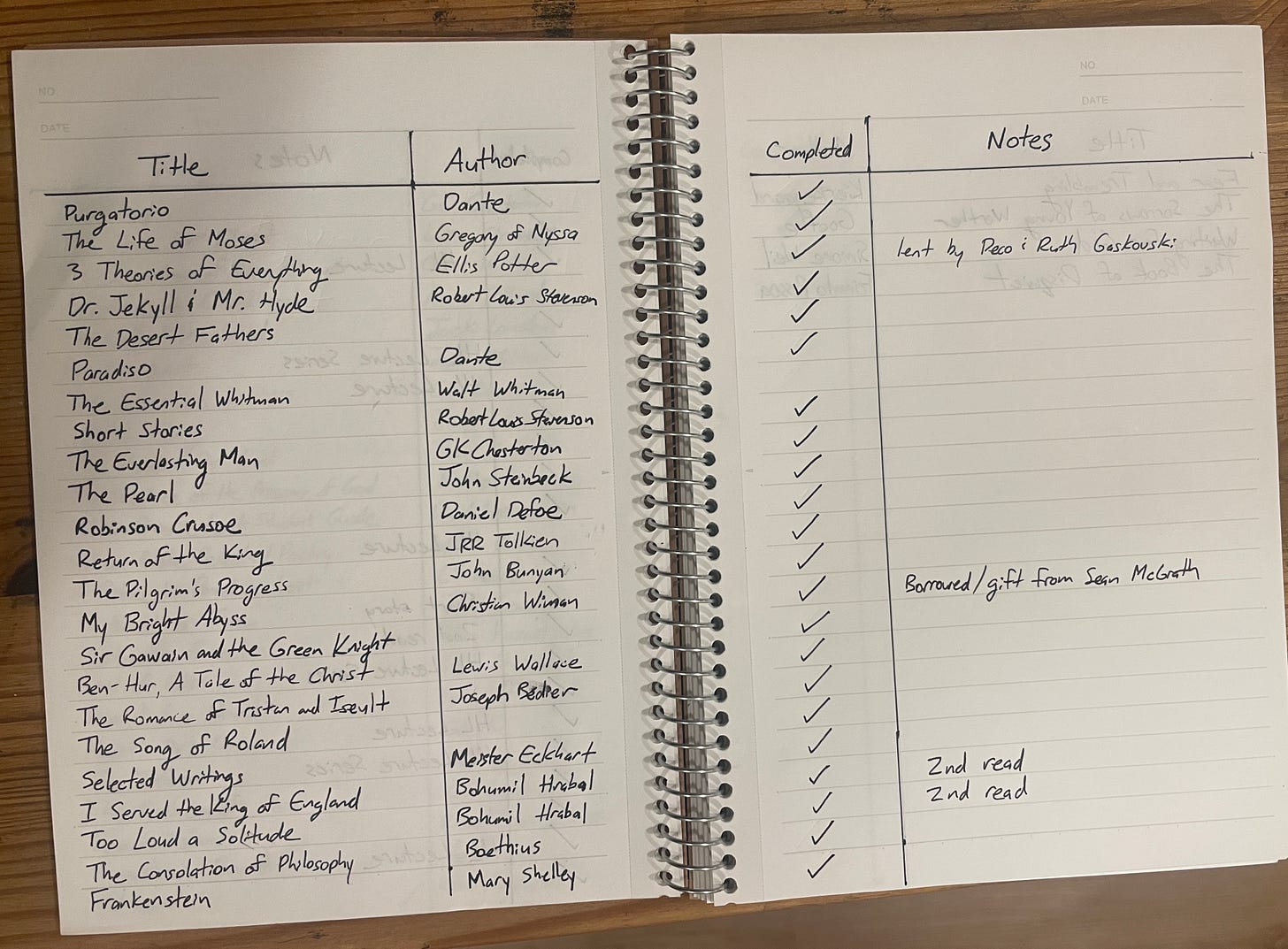 From sheer accumulation, I’ve read close to fifty books this year, including some big and difficult works like Dante’s Divine Comedy, Milton’s Paradise Lost, Steinbeck’s East of Eden, as well as longer studies on the writings of Stevenson and Chesterton and Hrabal and medieval literature and all the best essays of David Foster-Wallace1. Oh, and I’ve reread two-thirds of the Bible.